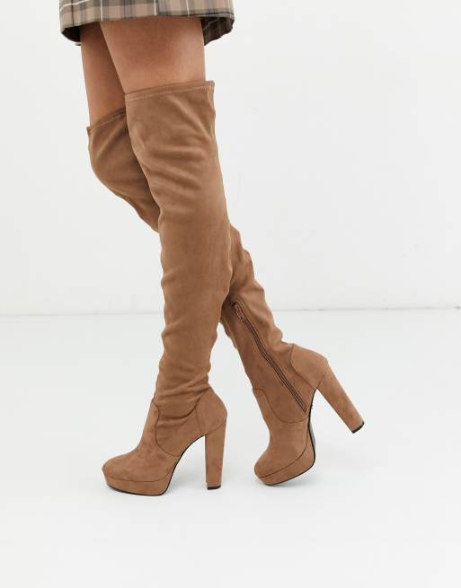 Knee high boots camel brown slip on fit elasticated cuffs peep toes. Women ladies thigh high boots over the knee stretch chunky low heel splice color. Whatever you're shopping for, we've got it. To avoid a fashion faux pas, soften your look with a romantic dress and accessorize with a. The detail vanessa wu description & material the detail vanessa wu.