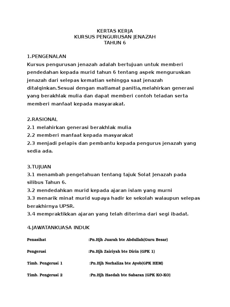 Mendedahkan kepada semua pelajar tentang kepentingan mengetahui cara pengurusan jenazah 2. Anjuran badan khairat kematian masjid al khairiah batu 7 kuantan pahang. Orang yg memandikan serta penolongnya 2. Diploma perakaunan kod dan nama kursus : Save save 49254519 kertas kerja pengurusan jenazah 2007 for later. Download as doc, pdf, txt or read online from scribd. Kursus pengurusan jenazah adalah bertujuan untuk memberi pendedahan kepada murid tahun 6 tentang aspek menguruskan jenazah dari selepas kematian sehingga saat jenazah ditalqinkan.sesuai dengan matlamat panitia,melahirkan generasi yang berakhlak mulia dan dapat memberi contoh. Kertas kerja van jenazah flip ebook pages 1 7 anyflip anyflip. Tempat memandikan mayat bilik (ruangan) yang tertutup tidak dibenarkan orang lain memasukinya melainkan: Sempena sambutan bulan kemerdekaan yang ke 60, setiap panitia di bawah bidang kemanusiaan dikehendaki merangka program tersendiri. Daerah muar oleh ustazah ustazah hjh aminah bt. Pengurusan murid dengan kerjasama pejabat kadi. Melaksanakan pengajaran dan pembelajaran salah satu daripada sukatan pelajaran pendidikan islam tingkatan 3.